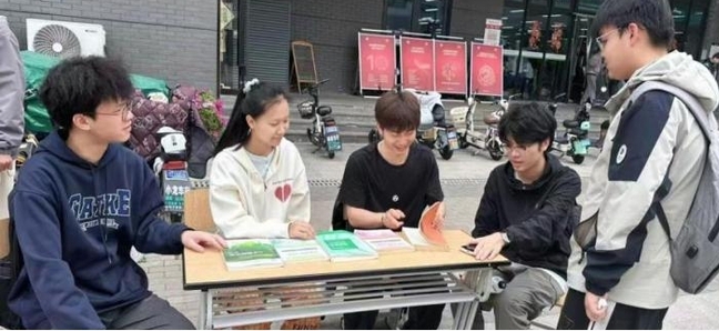 4月24日,公司在一食堂门口开展一场别开生面的“优秀图书置换会”书香集市在此精彩开展,吸引了众多同学驻足参与。此次活动共有两大特色摊位给同学们探索,一是二手书交易摊位,用于给同学们交换彼此喜爱的书籍,并且分享彼此之间的心得;二是专业书籍揭秘摊位,为同学们讲解了将来学习需要用到的书籍,帮助同学们明晰学习方向。本次书香市集不仅为同学们提供了一个交流阅读心得、共享图书资源的平台,激发了大家对阅读的热爱和对专业知识的探索热情。