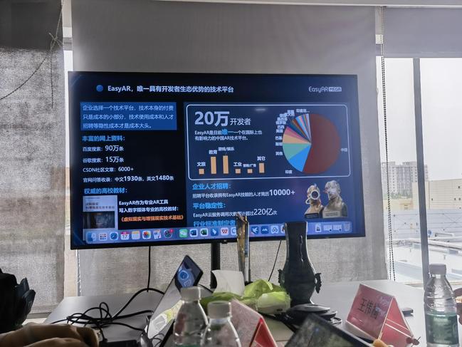 公司联合创始人王伟楠、商务总监张永明、工业产品线负责人文洁通过PPT展示的形式,详细介绍了该公司的部分业务以及和电力合作的部分项目。张永明聚焦公司核心技术优势,以“AR重构场景体验”为主题,详细阐释了增强现实技术在文旅融合、线下互动及智能导航领域的多元化应用。他通过丰富的案例演示与数据对比,展现了技术落地的成熟度与商业价值。文洁展示AR在电力场景的应用,公司为电网企业打造“AR智能巡检系统”,通过AR眼镜帮助运维人员快速定位设备隐患,实现“第一视角”故障诊断。