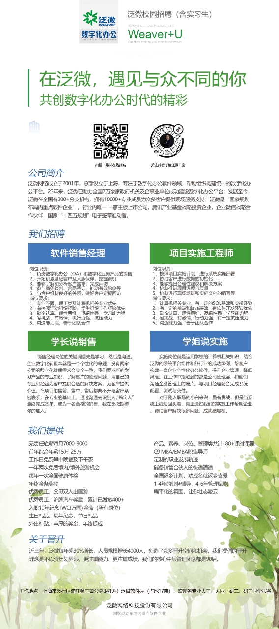 【招聘信息】泛微网络科技股份有限公司校园招聘