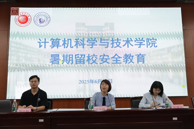 暑假留校员工安全教育大会,齐永晓从安全教育工作、留校管理要求等方面强调了消防安全、人身财产安全、交通出行安全和防范电信诈骗,告诫同学们要严格遵守暑假留校安全管理制度,增强安全防范意识,筑起一道保障假期留校员工认真学习、积极实践的“安全屏障”。留校员工签署了《2025年本科生暑假留校安全承诺书》《2025年研究生暑假留校安全承诺书》。