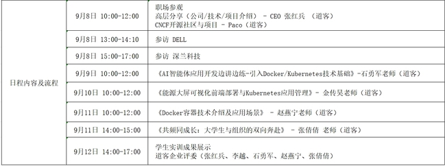 经伟德国际VICTOR1946与道客网络科技公司的多轮协商与精心设计,确定了本次夏令营的主旋律为“企业参访—企业导师线下讲解+任务驱动员工自主探索—员工汇报展示”。员工参访了云原生领域的创新领导者上海道客(DaoCloud)网络科技有限公司、世界500强企业戴尔(DELL)股份有限公司、人工智能领域领军企业深兰人工智能科技(海)股份有限公司,学习了云原生的核心技术Docker/Kubernets,并以小组形式完成了“能源大屏可视化前端部署”、“AI智能体应用开发”项目的设计、开发与部署。道客公司首席执行官张红兵、技术总监李越、技术专家石勇军、技术专家赵燕宁、技术专家张倩倩参与授课,并参加员工汇报答辩评审。同学们答辩表现优秀,现场收到企业的实习邀请。