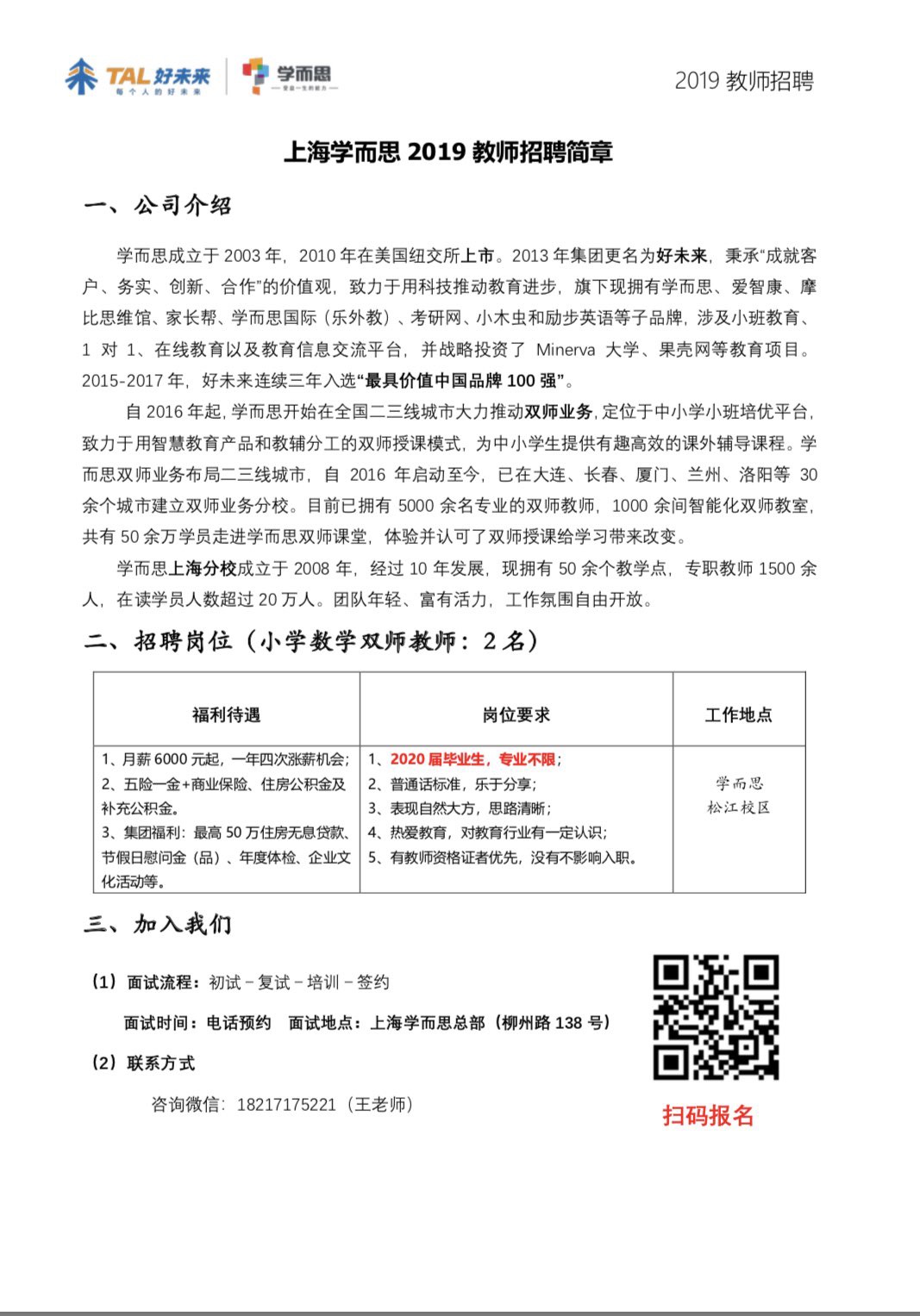 【招聘信息】105-201909上海学而思2019教师招聘简章