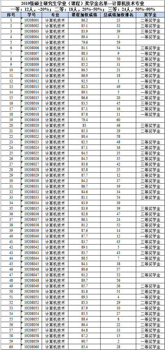 【公示】伟德国际VICTOR19462019级硕士研究生学业(课程)奖学金