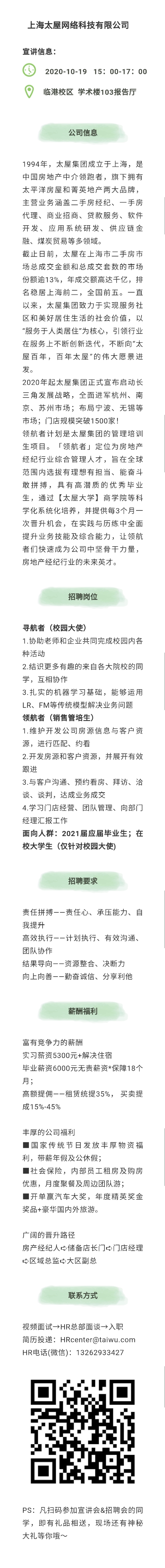 【招聘信息】210-202010上海太屋网络科技有限公司招聘