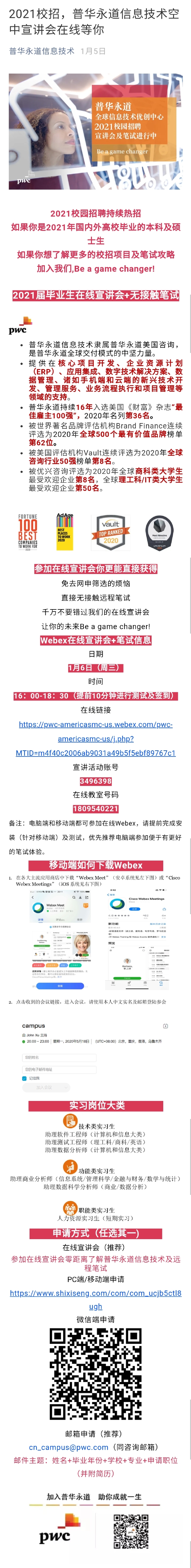 【招聘信息】225-202101普华永道信息技术空中宣讲会