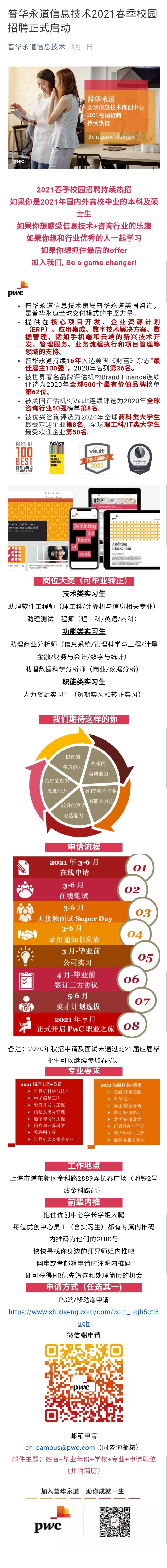 【招聘信息】236-202103普华永道信息技术春季招聘