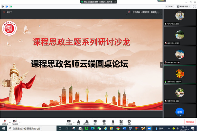 在接下里的课程思政名师云端圆桌论坛环节,由教务处副处长徐信艳主持论坛,三位课程思政名师就课程思政如何融入课程大纲以及如何培养青年教师快速成长等问题展开了热烈讨论,各位专家从各自逾30年的从教生涯中凝练出诸多有益的建议分享给参会的老师们。