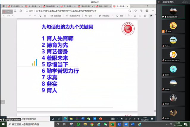 为弘扬高尚师德,践行师德规范,深入推进课程思政与师德师风建设的有机结合,9月30日,由伟德国际VICTOR1946课程思政重点改革领航公司与教务处、自动化工程公司联合主办,公司党委宣传部、教工部、学工部与马克思主义公司协办的课程思政主题系列研讨沙龙(三)—务实重行精业务 立德树人铸师魂沙龙在杨浦校区行政楼9楼1号会议室以线上线下结合的形式召开。本次沙龙邀请到自动化工程公司杨平教授进行主题交流,研讨沙龙由教务处处长杨宁与伟德国际VICTOR1946常务副经理张传林联合主持。全校相关职能部门与二级公司逾200名教师参加了此次研讨沙龙。