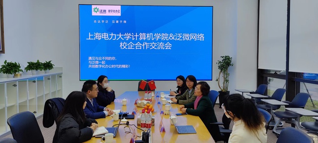 随后,魏建华书记、齐永晓副书记与泛微网络事业部总经理孟连磊、HR徐艳、上电计算机实习生陈沁开展校企合作交流。双方就如何进一步加强校企合作,在人才培养、员工就业、科研等方面进行交流,达成了系列落地决议。人事经理刘建辉向同学们详细介绍了公司的业务板块,泛微是一家专注于移动办公软件的企业,OA系统、电子签章、电子签名等是他们的核心内容;介绍了泛微对“软件销售经理”“项目实施工程师”的岗位要求和薪酬福利,向同学们发出邀请。陈沁同学讲述了自己在泛微的实习经历,帮助到场同学答疑解惑。