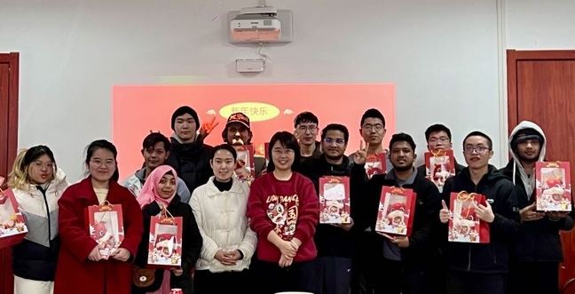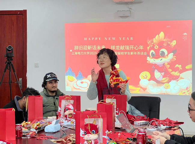 本次活动共分为共议家乡美、同享新春喜;新年交新友、共话同窗情;畅想新年愿望、书写新年贺卡;抽新春大奖、贺新年寄语等四个环节。参加本次茶话会的二十余名同学分别来自不同的公司,既有本科生、又有研究生,还有来自近十个国家的国际员工,无论是在分享家乡美景美食、风情年俗方面,还是在听灯谜、猜地名,击鼓传花、分享2023年收获、新年抽大奖等游戏环节,大家都奋勇争先,现场热闹非凡,洋溢着蓬勃的朝气,同学们领取到自己的新年贺卡,交到了新年新朋友。魏建华、齐永晓、张伟娜为留校员工送上新年礼品,茶话会现场其乐融融,欢声笑语。