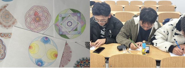 公司组织曼陀罗绘画团体心理活动,同学们跟随自己内心的感觉挥动画笔在曼陀罗图形上着色,将所思所想倾注在画的图形中,不断探索内心世界。活动结束后,同学们纷纷反馈,在绘画过程中,凝聚了心理能量、增强了内心的秩序感,激活了内在能量,助力了心灵成长。