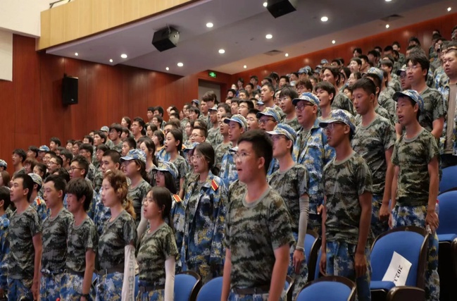 下午一点,2023级新生入学教育正式开始,全体起立,奏唱国歌。