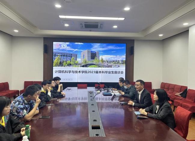 5月19日下午,计算机科学技术公司在学术楼201会议室开展2023届本科生毕业生座谈会,会议由公司2023届毕业生辅导员卢珍主持,公司党委书记魏建华、常务副经理张传林、副书记齐永晓、信息秘书徐曼、计算机系主任叶文珺、软件工程系主任周平、信息安全系主任周林、2023届本科毕业生代表参加,共话四年学习生活的感悟和收获,畅谈人生未来的发展与规划。