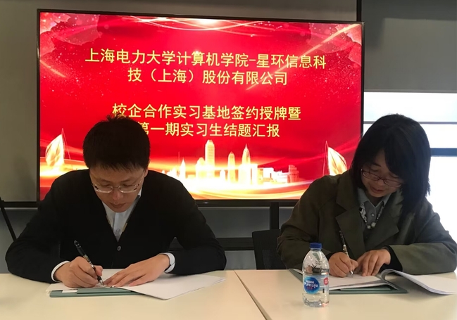 实习最后一天,校企双方举行校企合作实习基地签约授牌暨第一期实习生结题汇报仪式,星环科技副总裁朱珺辰、教育事业部总监杨洪山,公司党委副书记齐永晓、教学秘书徐曼出席签约授牌仪式,并共同听取了员工的结业汇报。