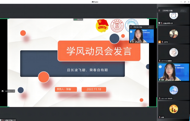 张璇同学以“代码可以复制粘贴,人生却不能ctrlc+ctrlv为”主题,从握紧勇气,逆风飞翔;砥砺奋进,永远青春;勤奋学习,行而不缀;锚定目标,扬帆起航四个方面分享了自己在老员工活中的学习和工作经验,鼓励学弟学妹们珍惜大学四年时间,奋发有为。
