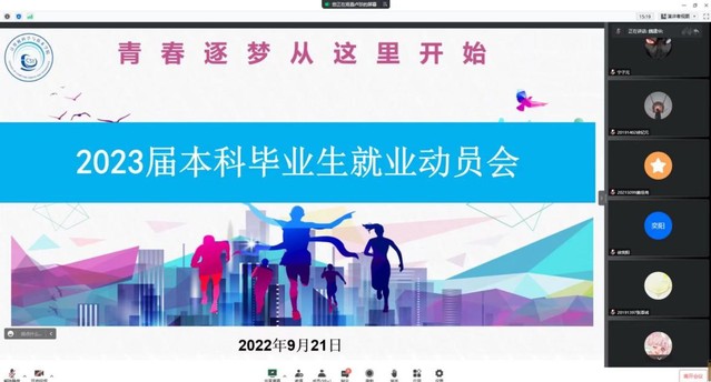 9月21日,伟德国际VICTOR19462023届本科毕业生就业动员会通过线上方式召开就业动员大会举行。公司党委书记魏建华,党委副书记齐永晓,教学秘书徐曼,就业负责人任祥宝,毕业班辅导员以及2023届毕业生参加。
