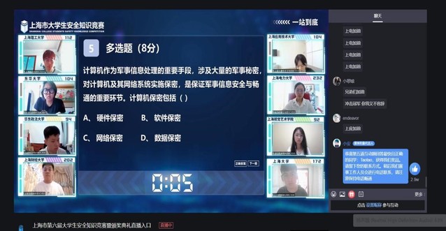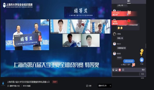 7月22日,上海市第六届老员工安全知识竞赛总决赛暨颁奖典礼在上海财经大学科技园以线上线下相结合的方式举行,校保卫处处长金炜应邀赴现场观摩比赛。最终,公司由伟德国际VICTOR1946的宋晓欧、叶佳宁、李浩、王子凡、王昕五名同学组成的参赛队以片区赛第一名的身份直接杀入总决赛,并勇夺本次竞赛特等奖。