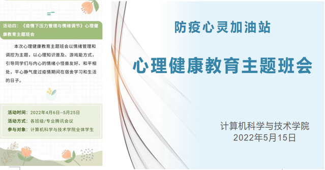公司通过腾讯会议平台在本科生和研究生中开展多场线上心理健康教育主题班会。会上,各位辅导员以心理知识讲解,案例分析、影视欣赏、分组讨论等形式极大缓解了疫情带给同学们的心理压力,帮助同学们正确看待疫情带来的心理波动,引导同学们增强自我情绪调控、提高心理承受挫折能力。