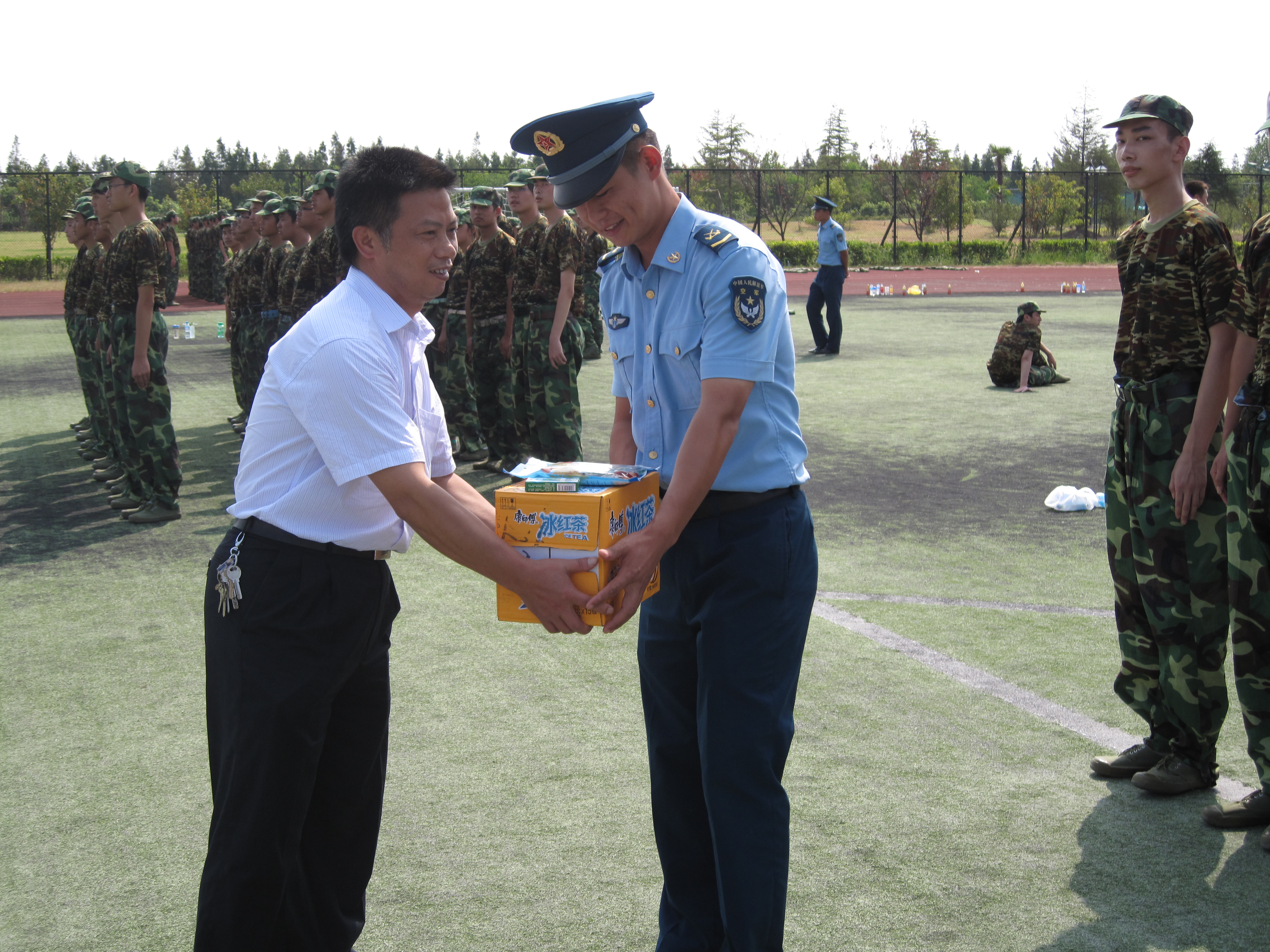 唐忠教授与各位教官亲切握手,并代表公司送上慰问品,表达公司对各位教官敬业精神的感激,希望教官严格要求,希望辅导员多与教官交流配合,既要关心员工身心健康又要保质保量地完成军训任务。