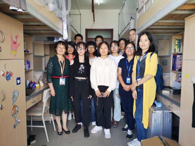 下午1:00,公司党委书记魏建华、党委副书记余南飞、新生班主任张超、张安勤、徐曼老师和新生辅导员一行来到新生宿舍走访慰问,魏书记详细了解了同学们的住宿和生活情况,关切嘱咐同学们尽早适应计算机学科的特点,找到适合自己的学习方法。