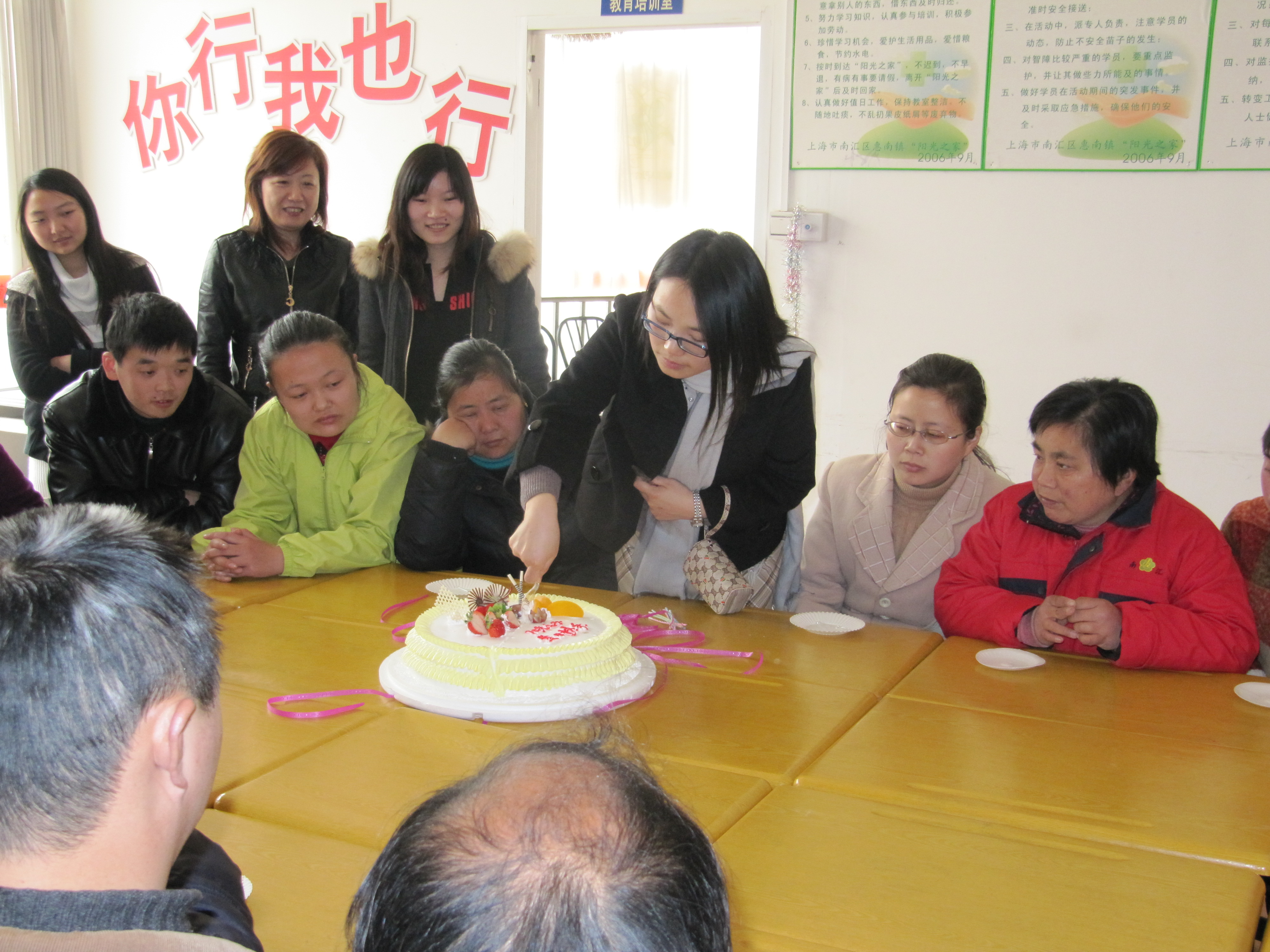 在场的老师及员工为在3月份生日的“阳光之家”成员举行了一场特别的生日会。在一首温暖的生日歌中开始了一个美好的下午。现场活动气氛活跃,有的志愿者为他们讲故事,有的则与他们一起下五子棋,有的则和他们一起唱歌,场面十分温馨。