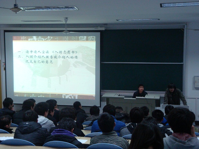 为了吸纳更多同学加入到团组织中,公司于4月15日在南4121举行了团员发展大会。参加此次会议的有团总支书记成勇、辅导员赵铮、团总支副书记彭丽婷、团总支办公室主任蔡炜等。