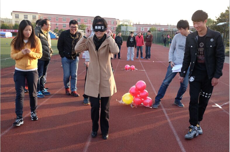 随后参与活动的师生被分为六组,由各位老师带队,秉着“友谊第一,比赛第二”的理念参加游戏。第一个游戏是二人三足木头人,队员之间默契的合作,博得大家阵阵掌声,同时也活跃了现场的气氛。第二个游戏蒙眼指挥将气氛推上了高潮,增强了师生之间的信任度,拉近了师生之间的距离。第三个游戏你画我猜,使大家脑洞大开,浮想联翩,在大家你一句我一句的猜测中,欢快的气氛延持了下去。本次活动由叶文�老师和刘志斌老师带队的第三组获得了第一名。