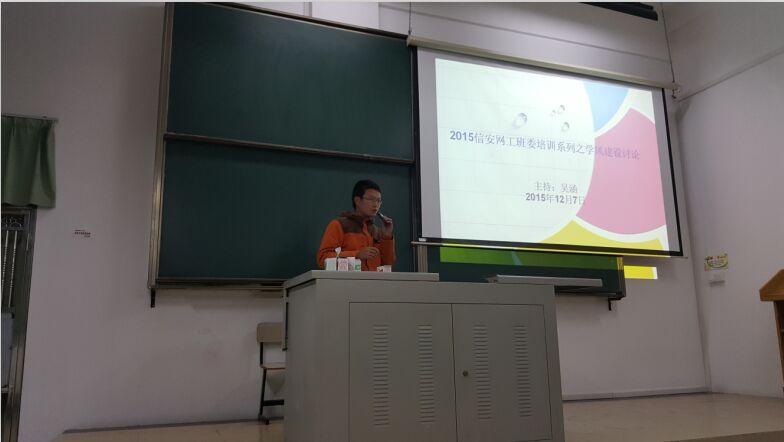 12月7日晚,2015级公司信安、网工专业的所有班委在辅导员吴涵老师的带领下,开展了第三次班委培训,主题是学风建设。