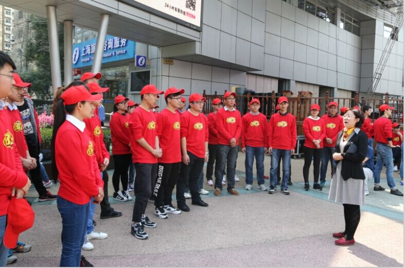 在下午一点到三点半,经过简单的彩排,公司老师和同学总共13人组成的志愿者团队和其他公司志愿者及专业演员一起在南京东路进行了三次表演,引起了过往行人的一次次围观,也得到了市妇联主席以及到场公司领导的高度赞赏。台上三分钟,台下十年功。在平时彩排的时候,志愿者们积极听从导演的安排,认真排练。志愿者一遍遍看着剧本,一次次练着动作,一句句记着歌词,他们从没有喊累。他们迎着学雷锋活动的东风,向大家展现了他们的热情、他们的奉献。