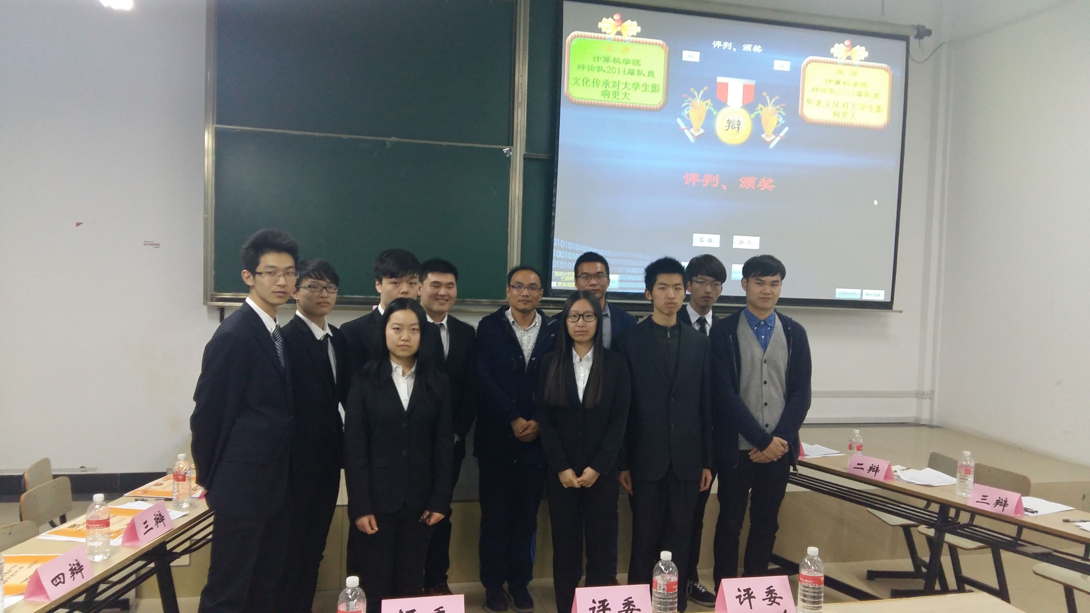 3月22日晚,公司“励志青春 放飞梦想”辩论表演赛在北二教顺利举行。,能机公司辅导员周长长老师、院团委书记赵铮老师、院员工会主席浦俊俊同学担任评委。