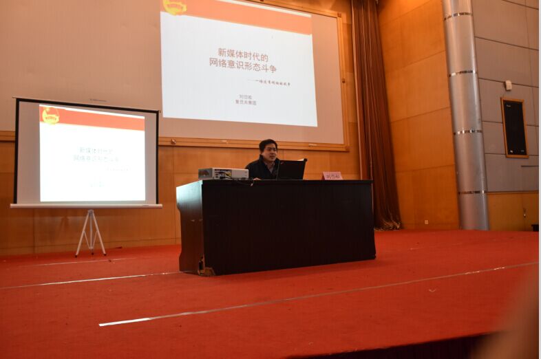 3月18日,复旦团委副书记刘岱淞老师以“新媒体时代的网络意识形态斗争”为主题,用大量的图片和新闻事实对比中,指出了虽然互联网飞速发展,也带来了不少问题。许多图谋不轨的无良媒体和无知跟风的个人,经常在网上恶意抹黑我们的党、我们的祖国,我们的民族,我们的英雄,我们的历史。更是以 “欲知大道,必先为史。灭人之国,必先去其史”的发言来警醒我们。