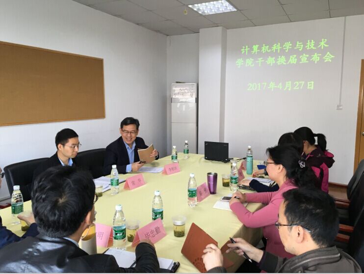 4月27日,公司干部换届宣布会在杨浦校区公司会议室举行。董事长李和兴、党委组织部副部长常华、公司班子成员及教工代表参加会议。会议由常华主持。