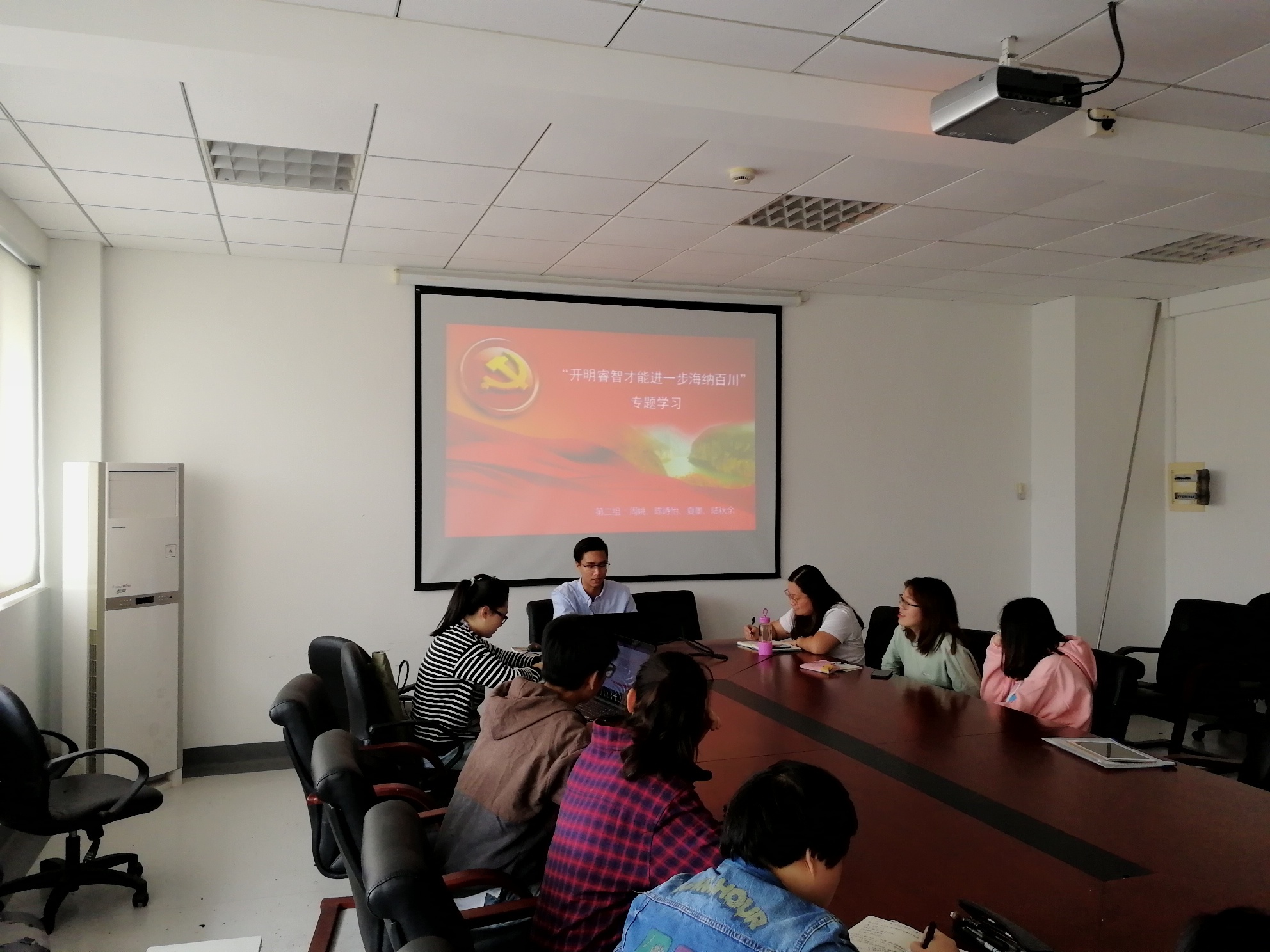 10月13号上午9点,以“遥首喜迎十九大,研习实践耀中华” 为主题的“习近平在上海”讲话系列展示、学习活动在行政楼会议室拉开帷幕。本次活动由院信息安全本科生党支部书记吴涵主持,参加本次学习活动的还有支部副书记贺文婷等16名党员。本次展示、学习活动积极响应公司党委号召,旨在通过学习、实践、展示使“习近平在上海”系列精神在每位党员的日常生活中得以践行。