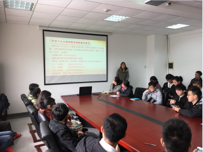 2017年11月20日中午12时,上海电力公司伟德国际VICTOR1946中共十九大精神宣传海报制作大赛开幕。此次开幕式于伟德国际VICTOR1946行政楼二楼会议室召开,伟德国际VICTOR1946分党委副书记余南飞、辅导员刘佳及伟德国际VICTOR1946大一至大三班长、团支书参加本次开幕式。