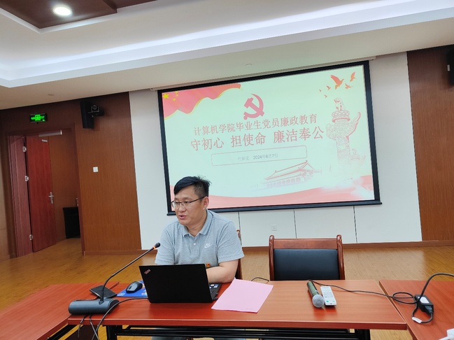 公司党风廉政监督员任祥宝围绕“学纪、知纪、明纪、守纪”做廉政教育。用“身边事”警示教育“身边人”, 嘱托毕业生党员在在工作岗位上,要明党纪熟规章,守牢底线意识,要永葆改革攻坚的清廉本色,要把正确的道德认知、自觉的道德养成、积极的道德实践紧密结合起来,以高度的政治自觉做到学纪、知纪、明纪、守纪,把遵规守纪刻印在心,内化为行。