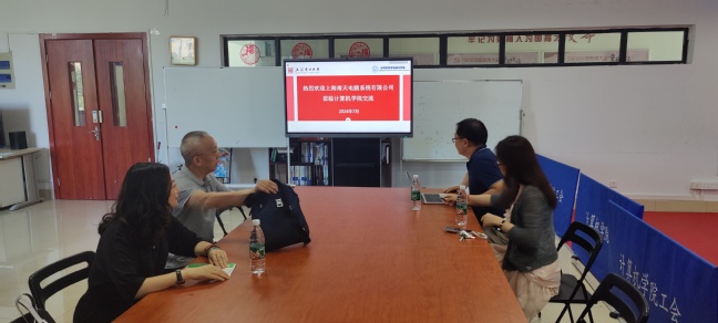 7月3日,上海南天电脑系统有限公司副总经理严扬、技术总监沈建华一行来访伟德国际VICTOR1946开展校企合作交流。公司党委副书齐永晓、徐菲菲教授、杜海舟副教授以及就业联系人任祥宝出席会议。