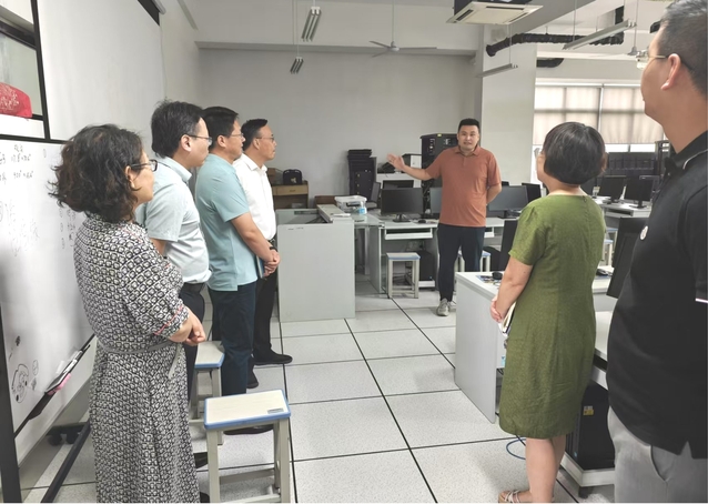 在公司党政班子陪同下,校领导一行先后考察伟德国际VICTOR1946软件与计算机网络实验室、老员工科创实验室、电力大数据智能分析实验室、网络数据攻防实验室,实地了解各实验室类型、功能和使用情况,对实验室建设等工作进行交流指导。