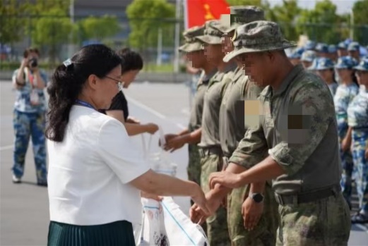 魏建华首先代表公司对教官们的辛勤付出表示感谢,同时对新生们在军训期间表现出的毅力和努力表示肯定。她提到,军训不仅是一次体能和纪律的锻炼,更是一次心灵的洗礼和团队协作能力的提升,希望同学们能够将军训中学到的精神贯彻到今后的学习和生活中去。魏建华向教官详细询问了员工们的身体素质、训练进度等情况,勉励了同学们要克服困难、刻苦训练、磨练意志,努力完成军训任务。