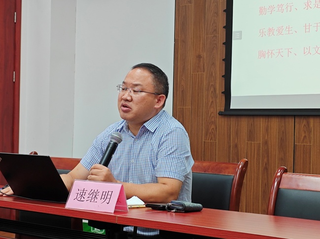首先,速继明教授以“习近平教育强国论述与教育家精神的践行”为主题,从三个维度,用通俗易懂的语言和丰富的实际案例来阐释习近平教育强国重要论述、中国近代史以来教育的发展历程、新时代教育家精神的践行,深入浅出地阐述了如何做一名好老师,如何坚定信念成才报国。他强调,作为教师,不仅要学高为师,具备扎实的专业知识,更要身正为范,以高尚的品德和言行影响员工。并鼓励青年教师,努力成为身心健康、有家国情怀、有社会责任心、有职业能力和有文化底蕴的人。