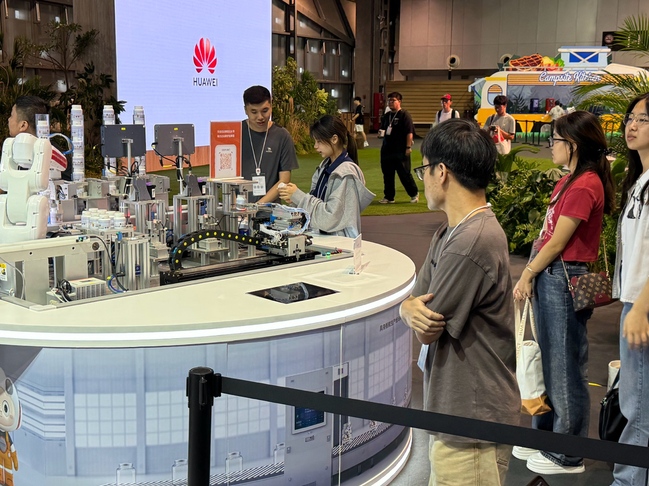 最后,师生们来到世博展览馆Hall3的互动体验区,近距离接触华为的最新技术产品。现场展出的AI技术、智能制造、智慧城市等应用场景,展示了数智化如何改变人们的生活和工作方式。同学们通过参与各种互动项目,进一步加深了对AI赋能各行各业的理解,亲身体验了前沿科技的魅力。