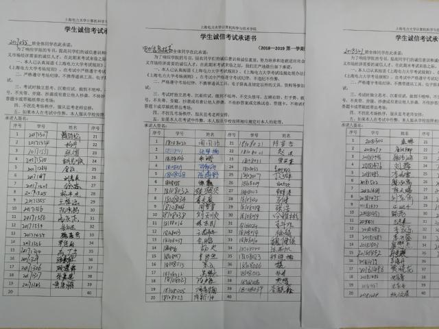 公司首先在微信公众号和易班平台上分别发布了“诚信考试,杜绝作弊”、“文明考风,诚信考试”的主题特刊,号召同学们认真备考,诚信应试。本周,公司又以行政班级为单位,全面召开了诚信考试主题班会,向员工重申考场纪律及诚信应考的重要性。主题班会过后,全院本科生、研究生自愿签署《员工诚信考试承诺书》,承诺严守考场纪律,绝不舞弊。